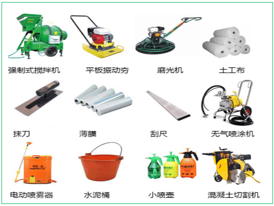 對各種施工機具做全面檢查,經調試證明處于性能良好狀態,機械數量足夠,施工能力配套,重要機械宜有備用設備。如:攪拌機、混凝土滾平機、運輸車、鏟車、手推車、路面切割機、平鐵锨、耙子、墩錘、手錘、鋁合金杠尺、3m直尺、水準儀、經緯儀、鋼尺、橡皮錘、小線等。